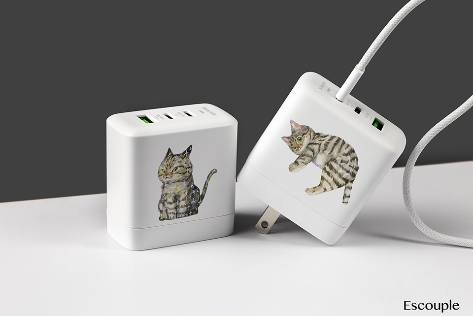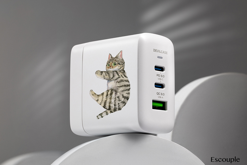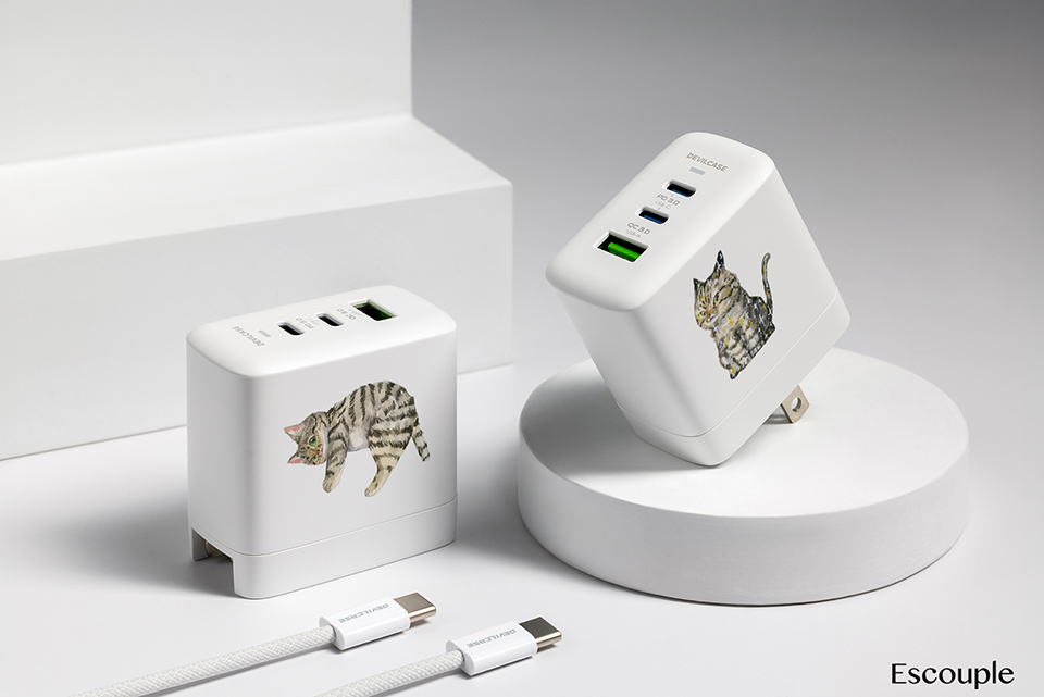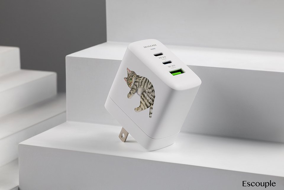 聯名正版授權 一氏插畫工作室 Escouple DC-PRO70 3孔 氮化鎵70W PD超急速充電器 虎斑喵